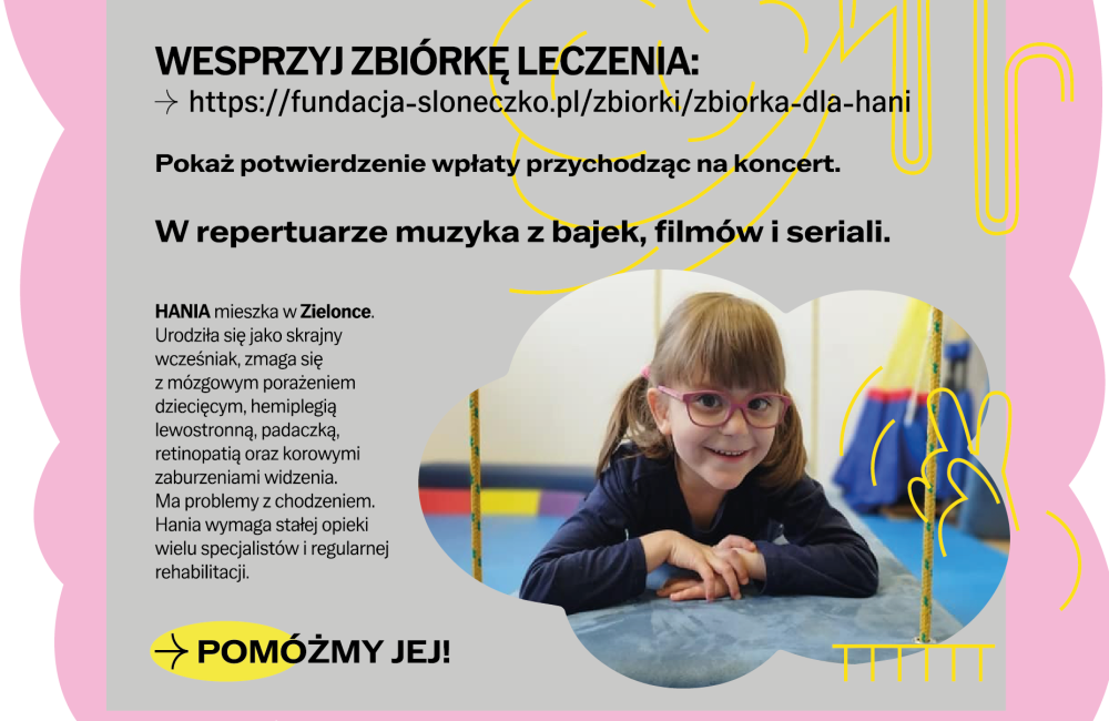 W Zielonce wydarzy się coś wyjątkowego – przed nami koncert pełen emocji, dźwięków z ulubionych filmów, bajek i seriali, który zagra i zaśpiewa dla… jednej małej bohaterki.