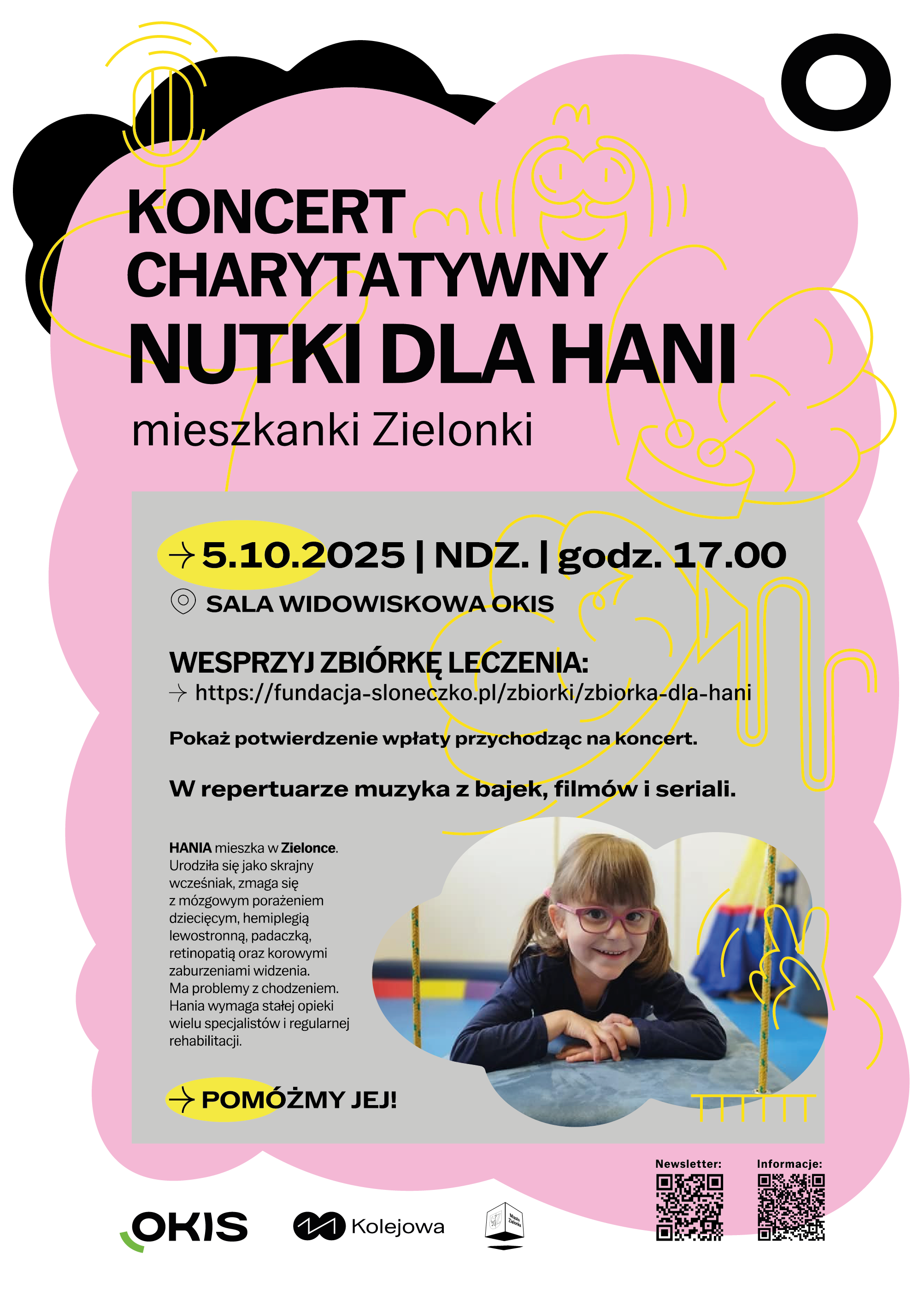 Aby wejść na koncert, wystarczy potwierdzenie wpłaty na zbiórkę i wsparcie leczenia Hani. Należy je okazać przy wejściu na salę widowiskową OKiS.