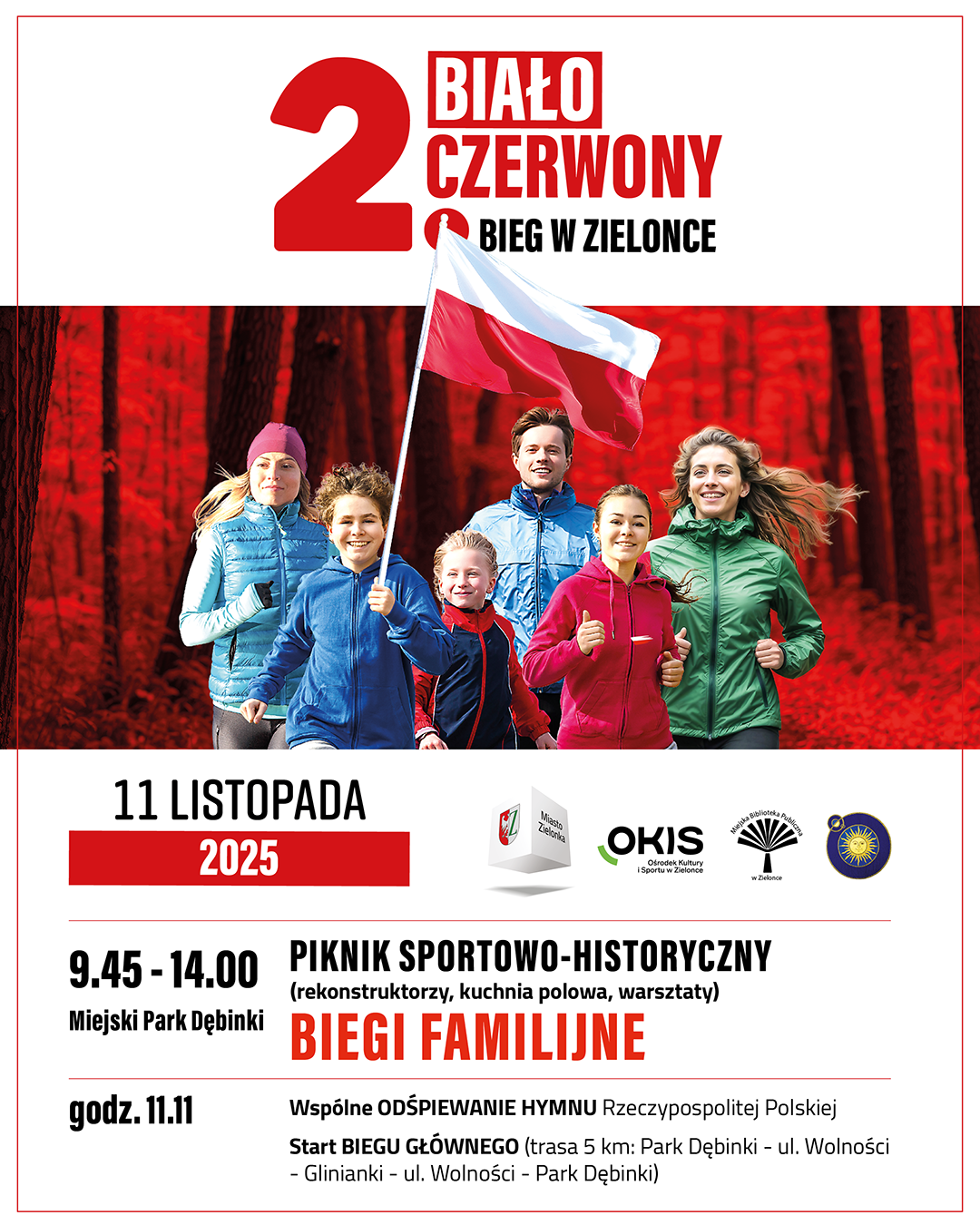 11 listopada wspominamy odzyskanie przez Polskę Niepodległości w 1918 roku. Z tej ważnej i radosnej okazji zapraszamy Was na piknik sportowo-historyczny, który odbędzie się w Parku Dębinki w Zielonce. W programie m.in. warsztaty, miasteczko historyczne i biegi, za ukończenie których można będzie zdobyć pamiątkowy medal. Głównym wydarzeniem będzie II Biało-Czerwony Bieg w Zielonce na trasie Dębinki-Glinianki-Dębinki. Na wszystkie atrakcje wstęp wolny. Uwaga: zachęcamy do przyjścia w biało-czerwonych strojach!