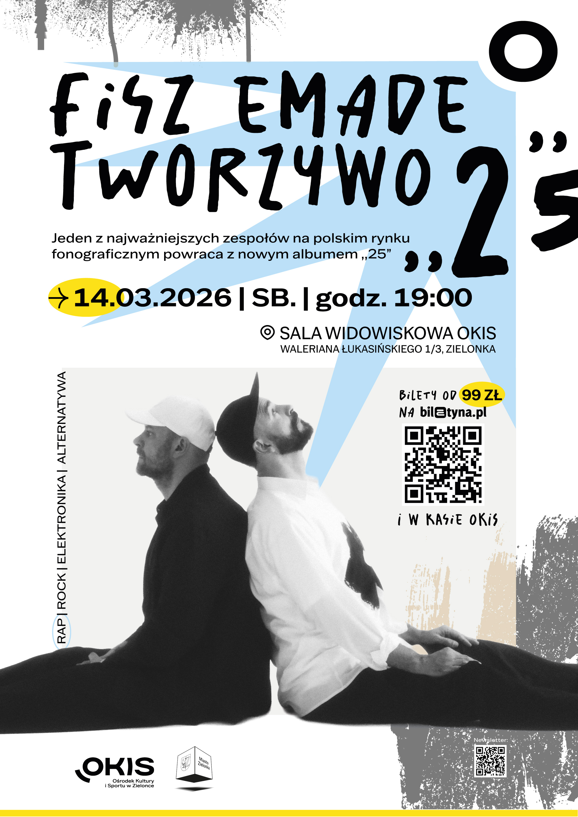 FISZ EMADE TWORZYWO, jeden z najważniejszych zespołów na polskim rynku fonograficznym, powraca z nowym albumem. Minęło 25 lat od debiutanckich „Polepionych Dźwięków”, a najnowszy album „25” stał się przyczynkiem do refleksji nad kolorowymi, muzycznymi latami, w czasie których ugruntował się niepowtarzalny i charakterystyczny styl muzyczny zespołu. To lata pełne koncertów wraz ze składem Tworzywo, czasy związane z kulturą hip-hop, etap eksperymentowania i nowego początku po sukcesie płyty „Mamut”.