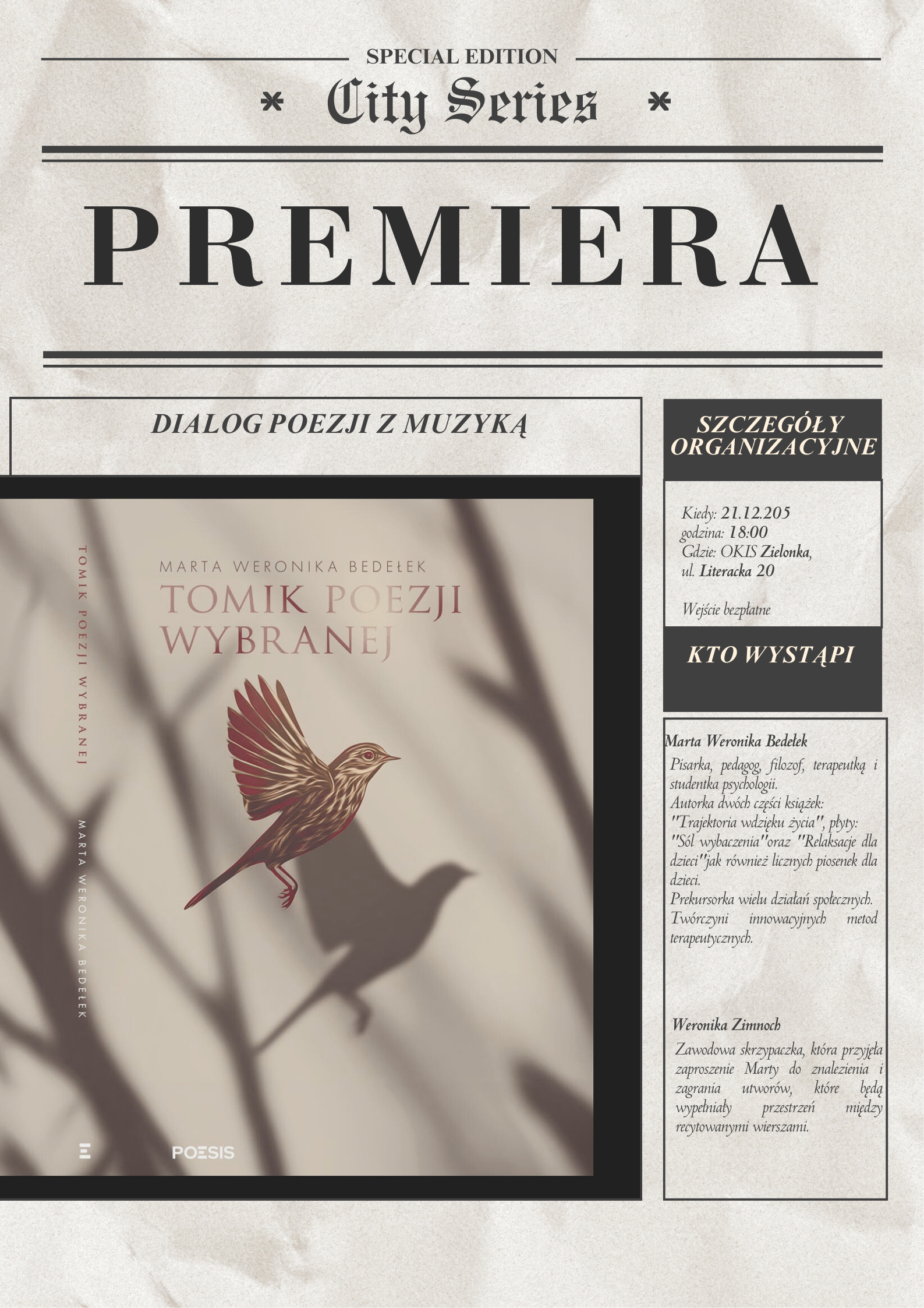 Po spotkaniu będzie można kupić „Tomik Poezji Wybranej” o wartości 50 zł.