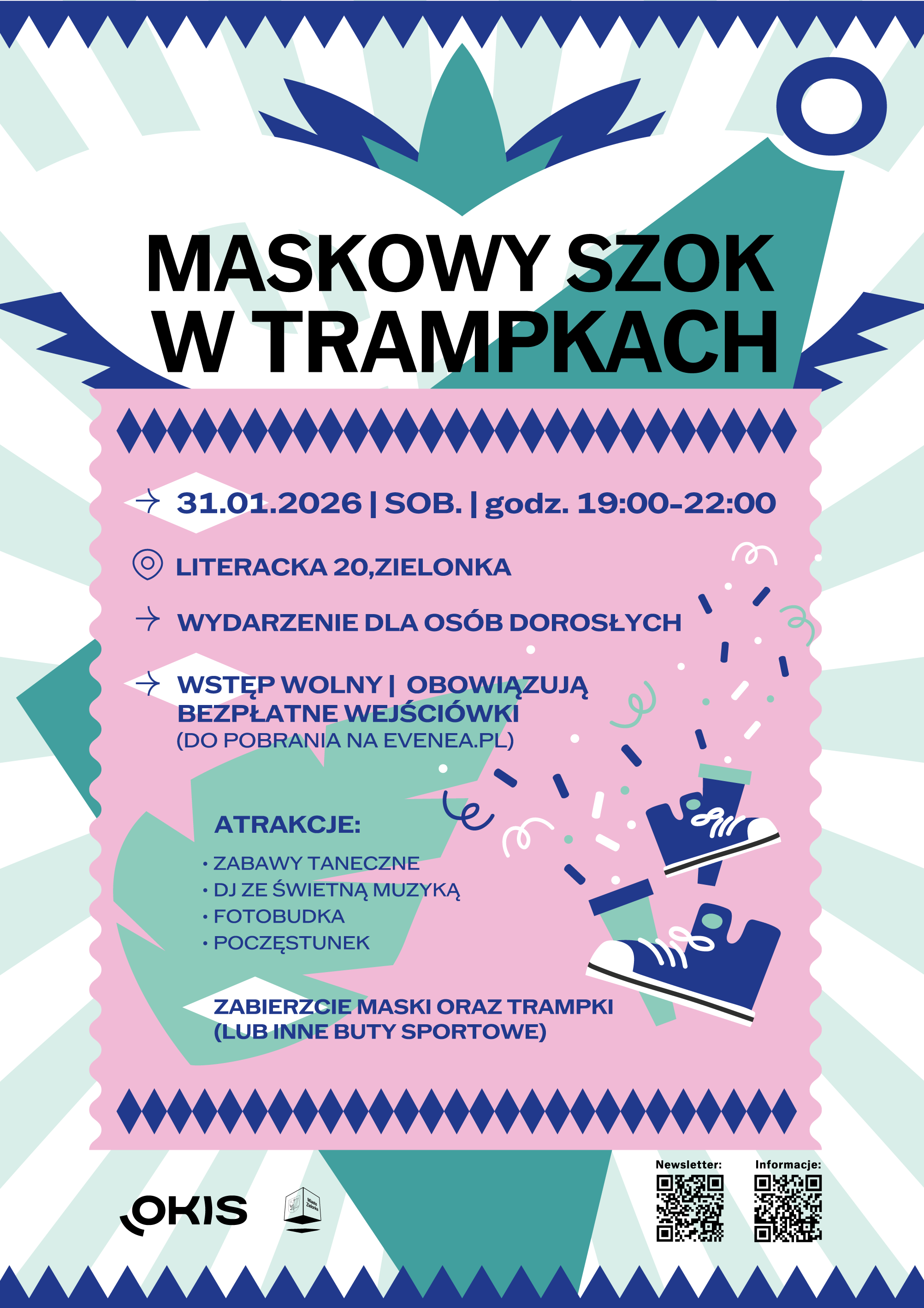 Zabierzcie trampki (lub inne wygodne buty) oraz maski - symbol karnawału i wpadajcie rozpocząć nowy rok tanecznym krokiem :)