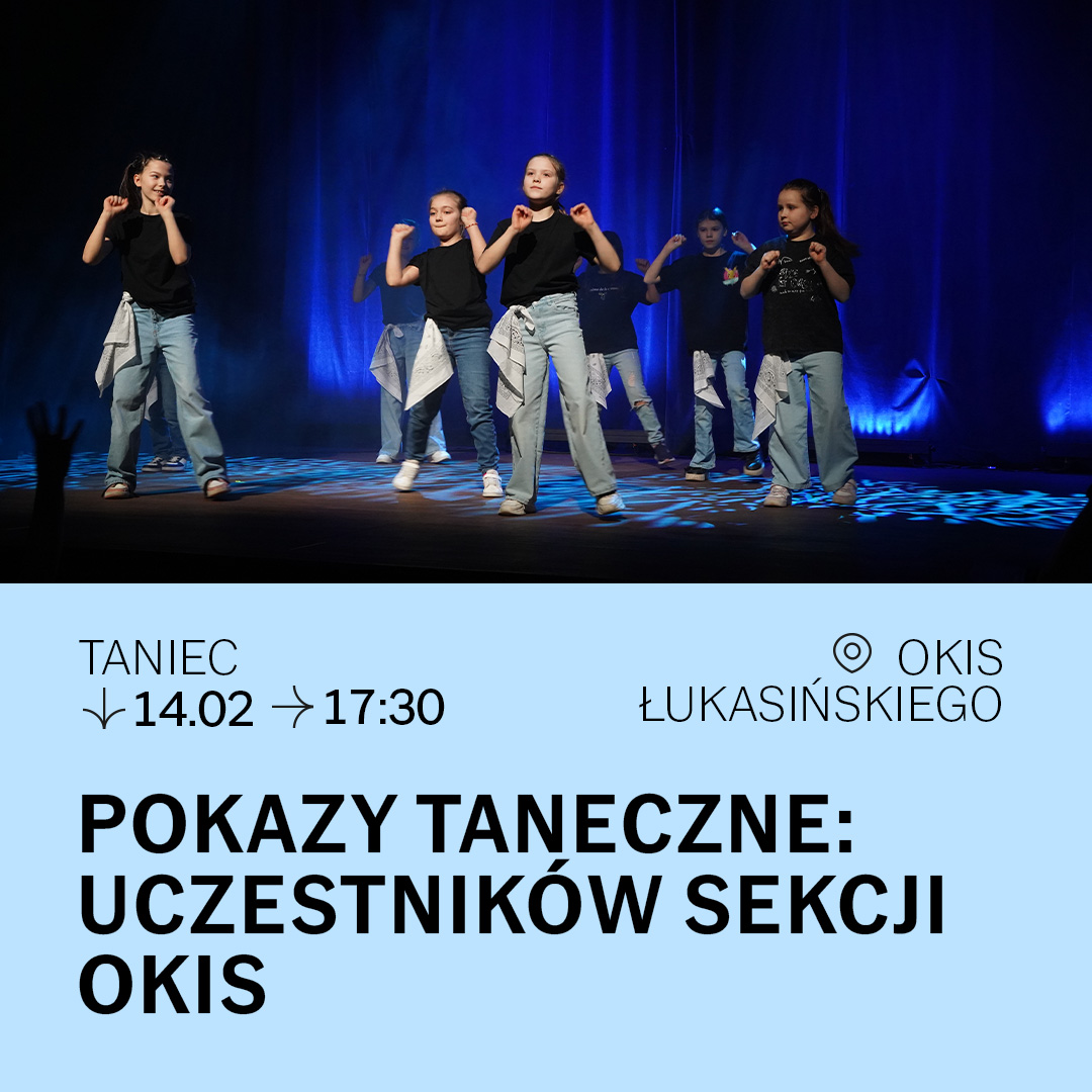 Zapraszamy na kolejny pokaz uczestników zajęć stałych w Ośrodku Kultury i Sportu w Zielonce. Tym razem czekają na Was występy taneczne grup dziecięcych, młodzieżowych oraz dorosłych. 14 lutego o godzinie 17:30 na naszej scenie zobaczymy układy tańca towarzyskiego, baletu, latino czy hip-hopu!